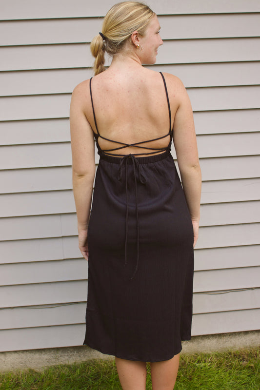 Elastic Strap Midi Dress – Black